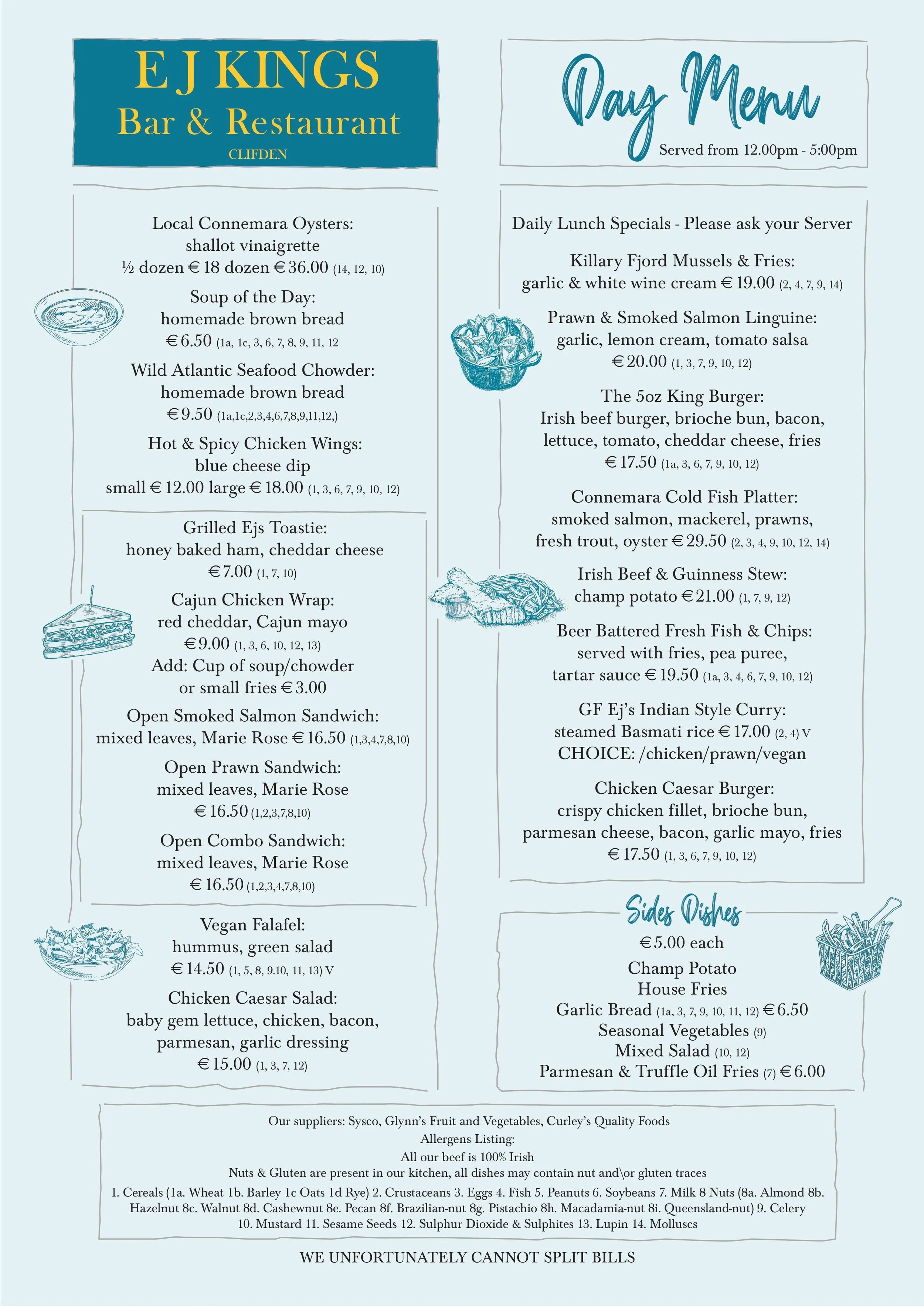 A magnet for writers, artists, filmmakers and naturalists, Clifden enjoys an international reputation for excellent food, drink and good cheer and EJ’s is no exception!