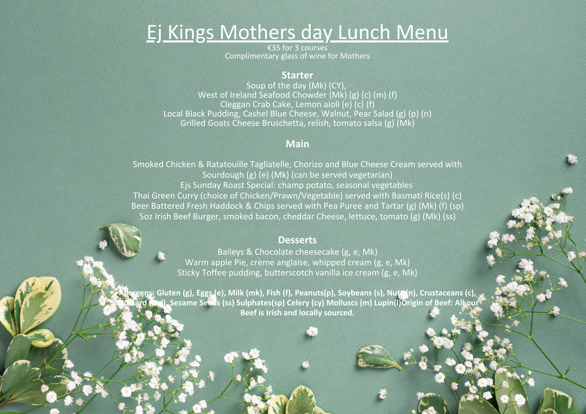 Mother's Day Menu